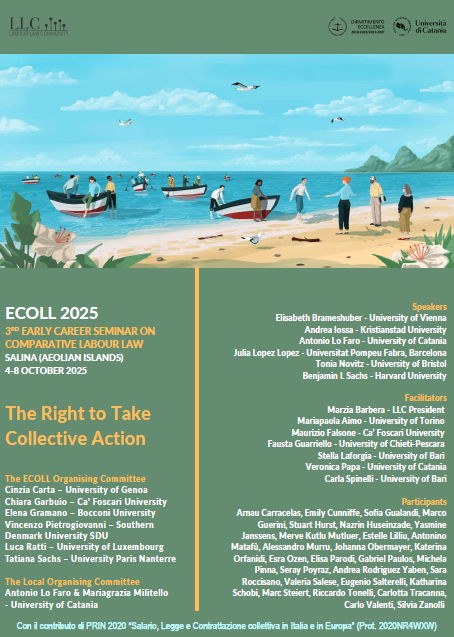 Da Sab, 04/10/2025 a Mer, 08/10/2025 Mode On-site-only File Programme706.16 KB 22/07/2025 LLC Early Career Seminar on Comparative Labour Law (ECOLL) – The right to take collective action on-site only | 4-8 October 2025 - Salina (Aeolian Island) ECOLL 2025 3rd Early Career Seminar on Comparative Labour Law