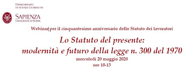 Da Mer, 20/05/2020 a Mer, 20/05/2020 Mode Online-only 14/11/2022 Lo Statuto del presente: modernità e futuro della legge n. 300 del 1970 online only | ore 10-13