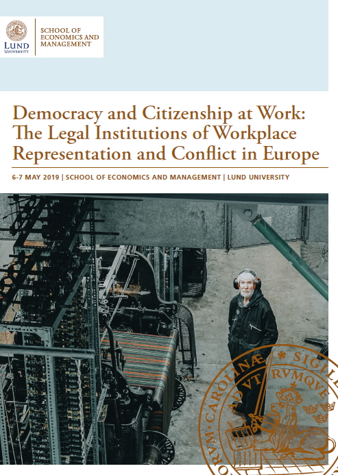 Da Lun, 06/05/2019 a Lun, 06/05/2019 Mode On-site-only 14/11/2022 Lund - Democracy and Citizenship at Work: The Legal Institutions of Workplace Representation and Conflict in Europe (6-7- May 2019) on-site only |