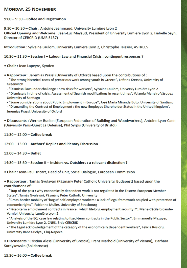 LYON - Which securities for workers in times of crisis? Final Conference (25-26 November 2013)