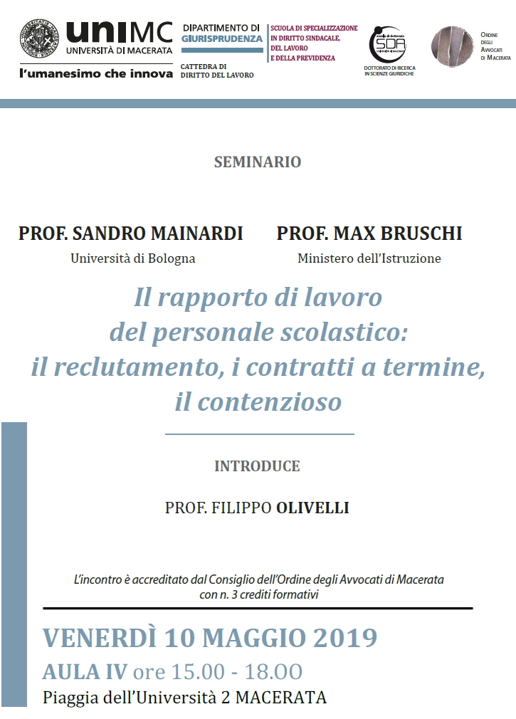 MACERATA - Il rapporto di lavoro del personale scolastico: il reclutamento, i contratti a termine, il contenzioso