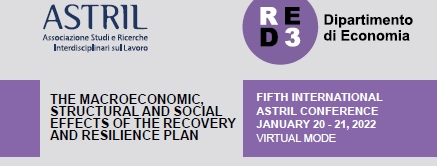 Da Gio, 20/01/2022 a Ven, 21/01/2022 Mode Online-only File (download locandina)621.15 KB 18/01/2022 The Macroeconomic, Structural and Social Effects of the Recovery and Resilience Plan online only h. 10 | 20-21 gennaio 2022 FIFTH INTERNATIONAL ASTRIL CONFERENCE