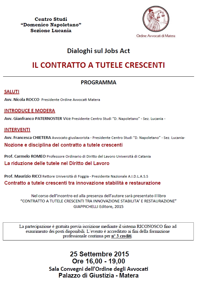 MATERA - Dialoghi sul Jobs Act - Il contratto a tutele crescenti