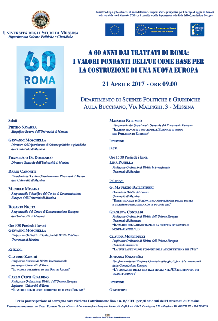 MESSINA - A 60 anni dai Trattati di Roma: i valori fondanti dell'UE come base per la costruzione di una nuova Europa