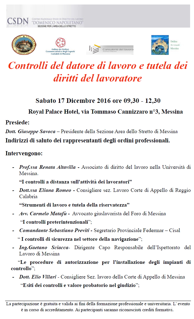 MESSINA - Controlli del datore di lavoro e tutela dei diritti del lavoratore