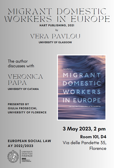 Da Mer, 03/05/2023 a Mer, 03/05/2023 Mode On-site-only File Programme138.35 KB 19/04/2023 Migrant domestic workers in Europe on-site only h. 14:00 | Via delle Pandette 35, Florence Università degli Studi di Firenze Dipartimento di Scienze Giuridiche