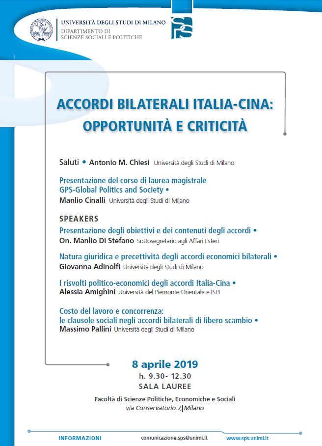 MILANO - Accordi bilaterali Italia - Cina: opportunità e criticità