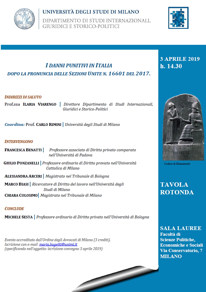 MILANO - Danni Punitivi in Italia dopo la pronuncia delle Sezioni Unite n. 16601 del 2017