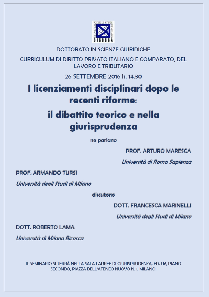 MILANO - I licenziamenti disciplinari dopo le recenti riforme: il dibattito teorico e nella giurisprudenza