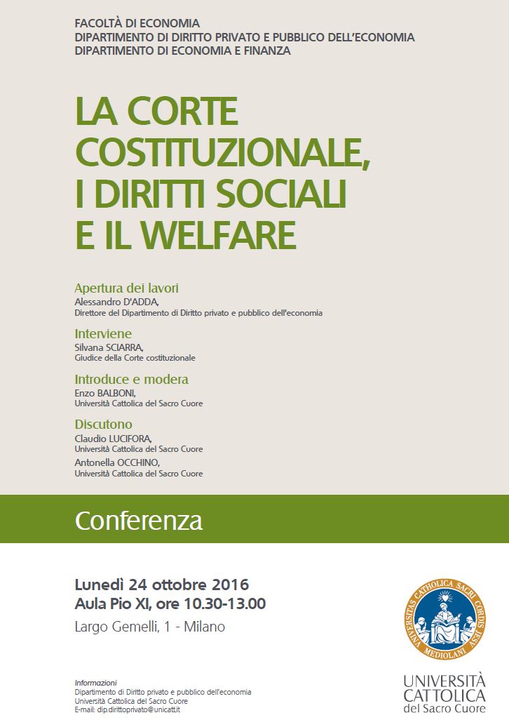 Da Lun, 24/10/2016 a Lun, 24/10/2016 Mode On-site-only 14/11/2022 MILANO - La Corte Costituzionale, i diritti sociali e il welfare on-site only | Largo Gemelli, 1 - ore 10.30