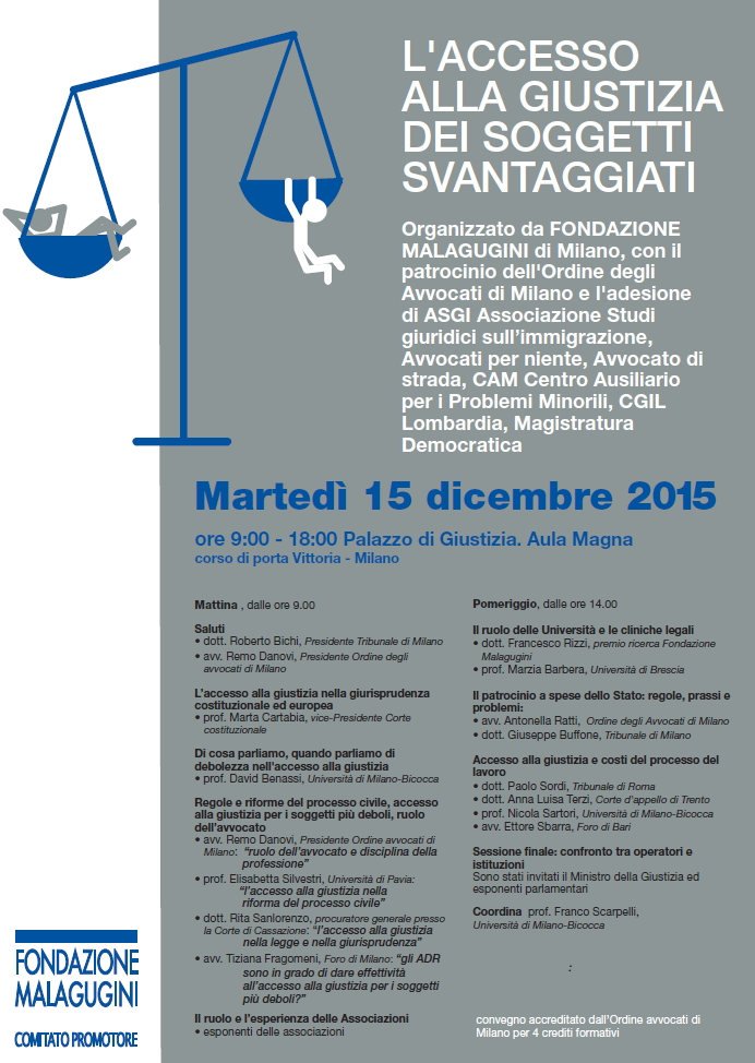 Da Mar, 15/12/2015 a Mar, 15/12/2015 Mode On-site-only 14/11/2022 MILANO - L'accesso alla giustizia dei soggetti svantaggiati on-site only | Palazzo di Giustizia - ore 9.00