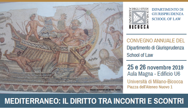 Da Lun, 25/11/2019 a Lun, 25/11/2019 Mode On-site-only 14/11/2022 MILANO - Mediterraneo: il diritto tra incontri e scontri (25-26 novembre 2019) on-site only | Piazza dell’Ateneo Nuovo, 1 - ore 14 Programma