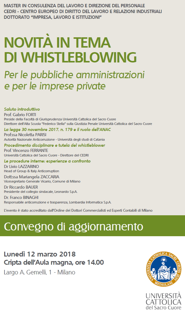 MILANO - Novità in tema di whistleblowing. Per le pubbliche amministrazioni e per le imprese private