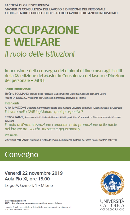 MILANO - Occupazione e welfare. Il ruolo delle Istituzioni