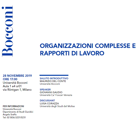 MILANO - Organizzazioni complesse e rapporti di lavoro