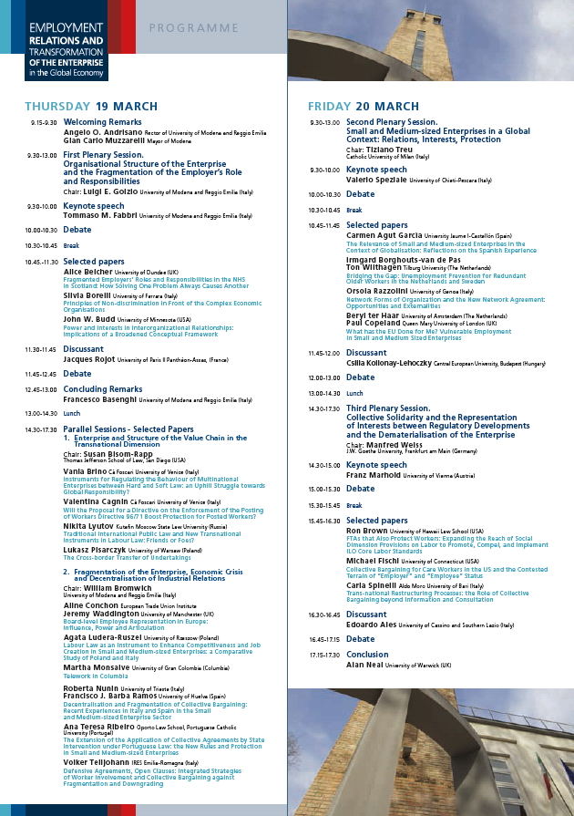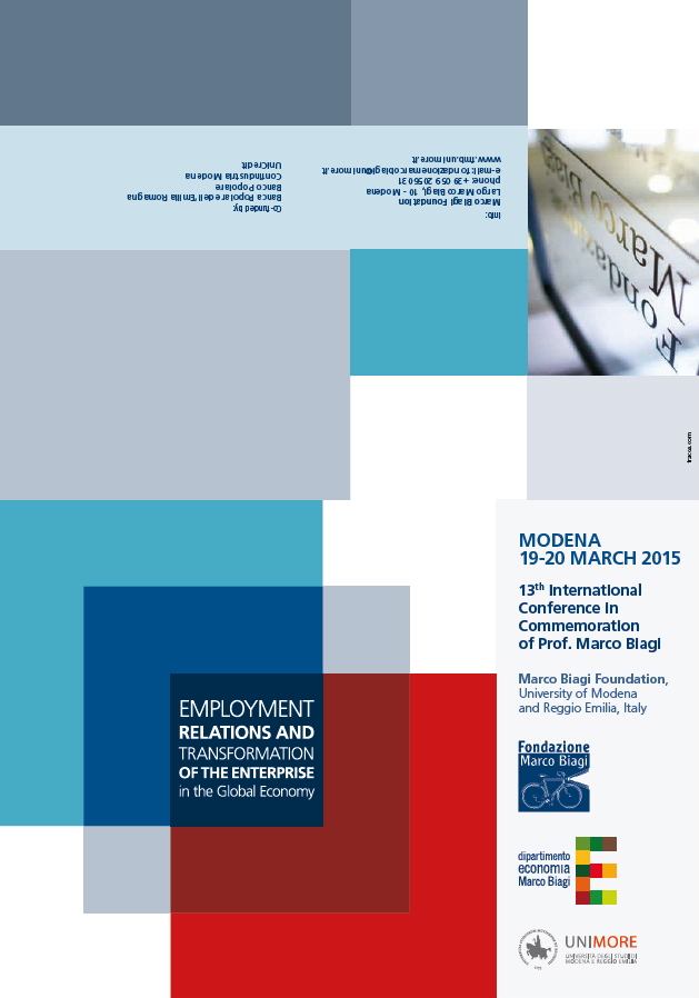 Da Gio, 19/03/2015 a Gio, 19/03/2015 Mode On-site-only 14/11/2022 MODENA - 13th International Conference in Commemoration of Prof. Marco Biagi (19-20 March 2015) on-site only | Modena