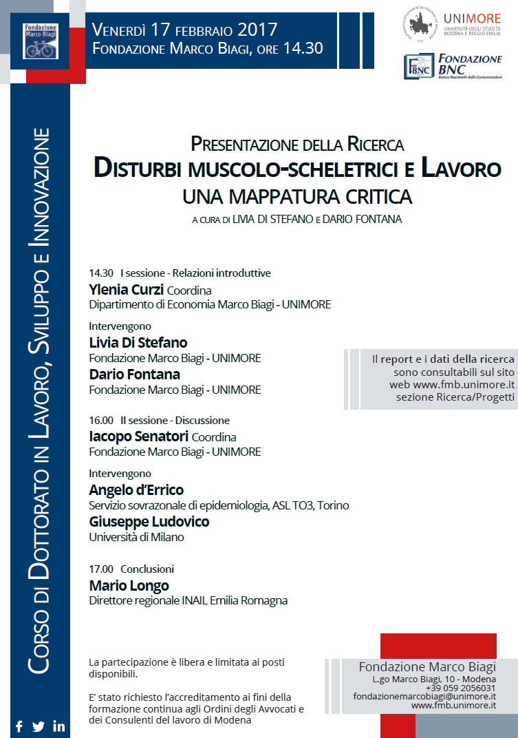MODENA - Disturbi muscolo-scheletrici e lavoro: una mappatura critica