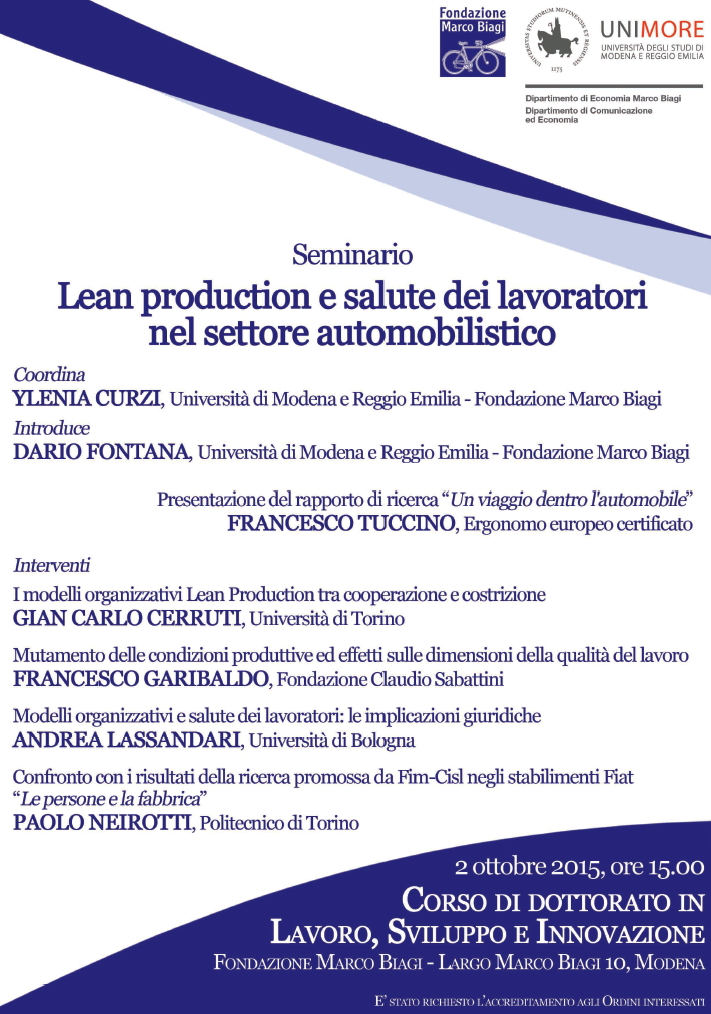 MODENA - Lean production e salute dei lavoratori nel settore automobilistico