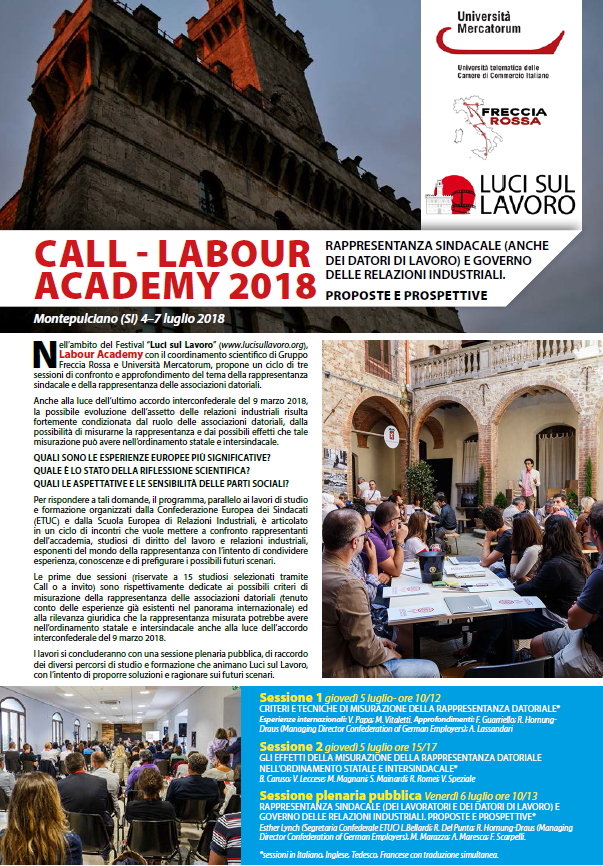 MONTEPULCIANO - Rappresentanza sindacale (anche dei datori di lavoro) e governo delle relazioni industriali. Proposte e prospettive (4-7 luglio 2018)
