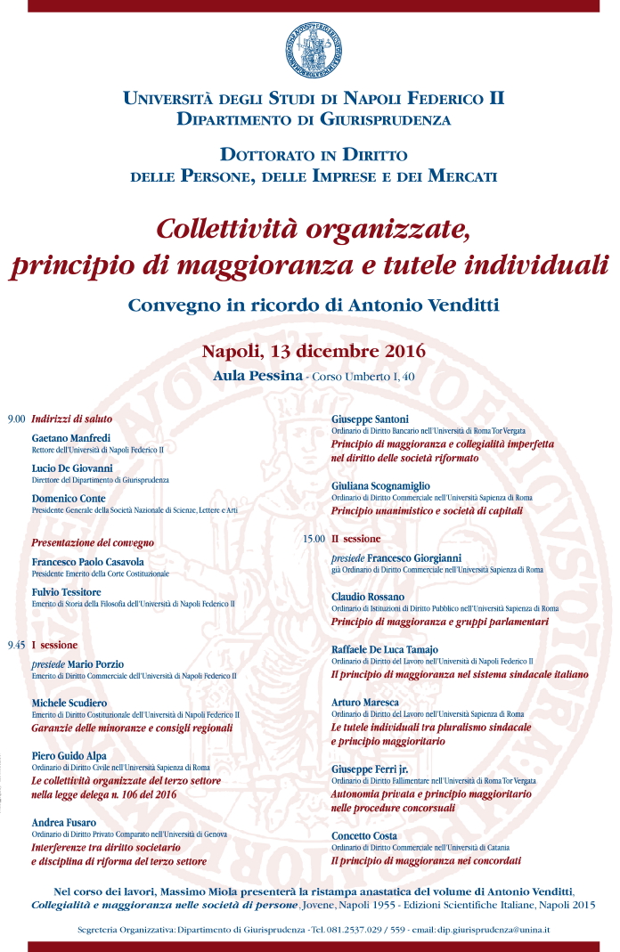 Da Mar, 13/12/2016 a Mar, 13/12/2016 Mode On-site-only 14/11/2022 NAPOLI - Collettività organizzate, principio di maggioranza e tutele individuali on-site only | Corso Umberto I, 40 - ore 9