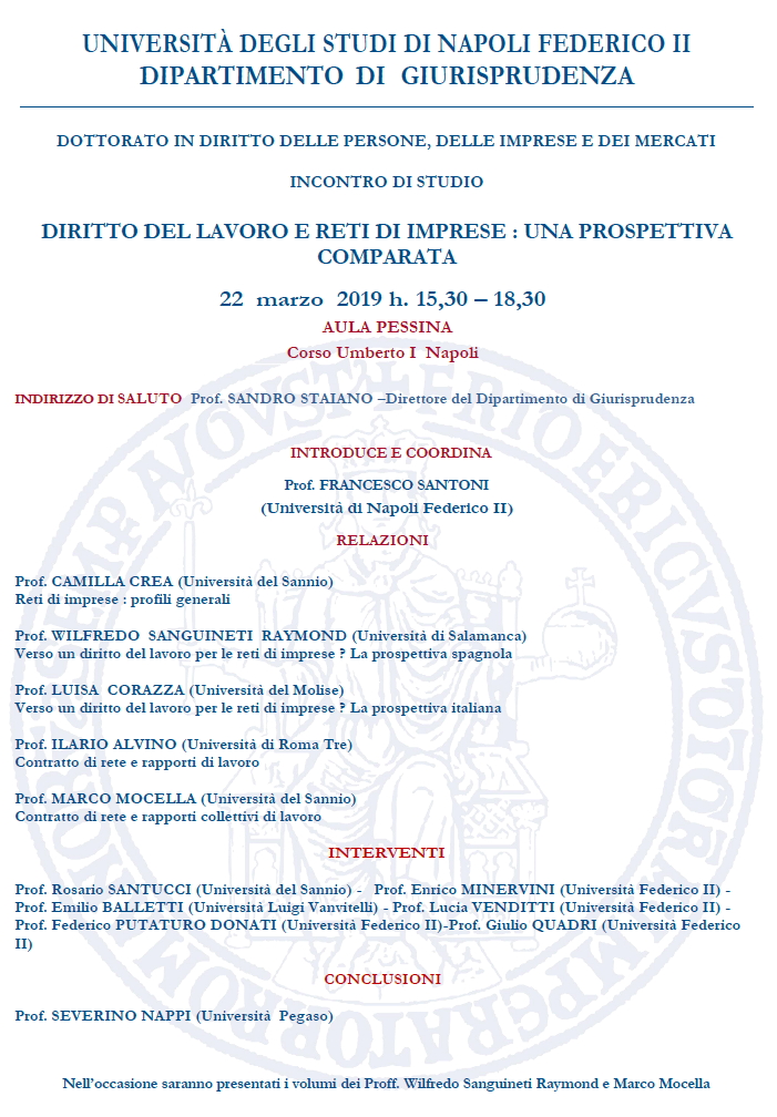 NAPOLI - Diritto del lavoro e reti di imprese: una prospettiva comparata