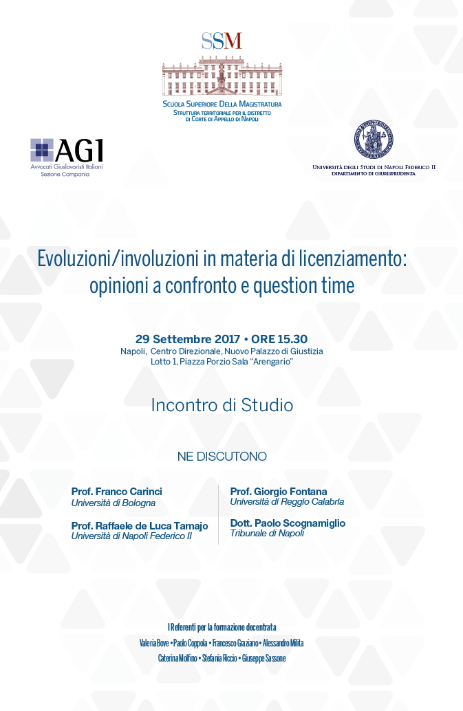Da Ven, 29/09/2017 a Ven, 29/09/2017 Mode On-site-only 14/11/2022 NAPOLI - Evoluzioni/involuzioni in materia di licenziamento: opinioni a confronto e question time on-site only | Piazza Porzio Sala “Arengario” - ore 15.30