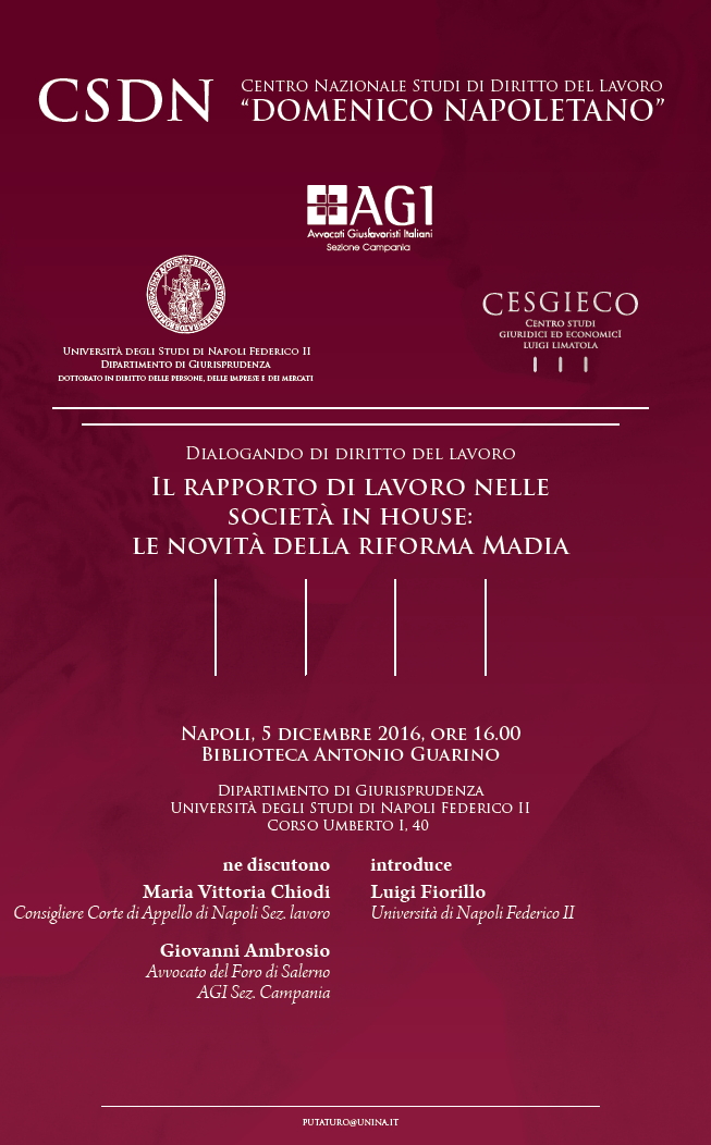 NAPOLI - Il rapporto di lavoro nelle società in house: le novità della Riforma Madia
