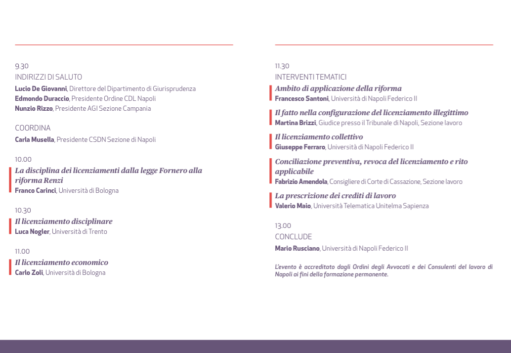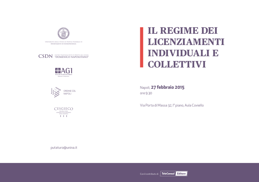 Da Ven, 27/02/2015 a Ven, 27/02/2015 Mode On-site-only 14/11/2022 NAPOLI - Il regime dei licenziamenti individuali e collettivi on-site only | via Porta di Massa 32 - 9:30