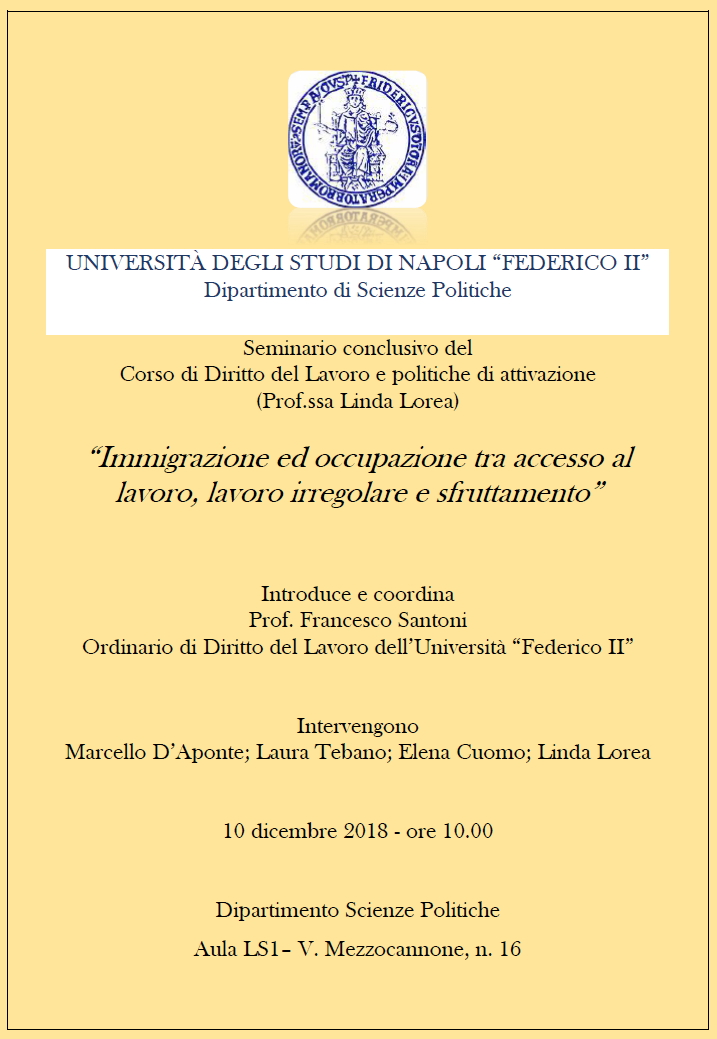 NAPOLI - Immigrazione ed occupazione tra accesso al lavoro, lavoro irregolare e sfruttamento