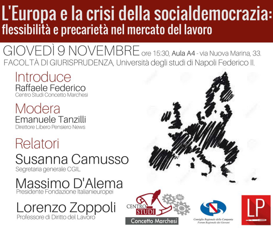 Da Gio, 09/11/2017 a Gio, 09/11/2017 Mode On-site-only 14/11/2022 NAPOLI - L'Europa e la crisi della socialdemocrazia: flessibilità e precarietà nel mercato del lavoro on-site only | Via Nuova Marina, 33 - ore 15.30
