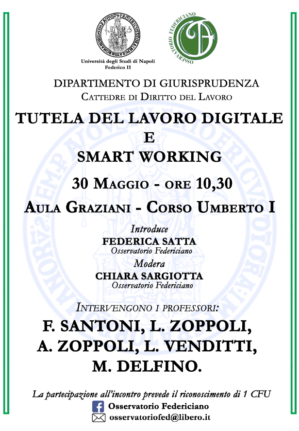 Da Mer, 30/05/2018 a Mer, 30/05/2018 Mode On-site-only 14/11/2022 NAPOLI - Tutela del lavoro digitale e smart working on-site only | Corso Umberto I - ore 10.30