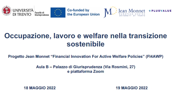 Da Mer, 18/05/2022 a Gio, 19/05/2022 Mode Hybrid 10/05/2022 Occupazione, lavoro e welfare nella transizione sostenibile hybrid h. 9.00 | 18-19 maggio 2022 Conferenza finale del Progetto Jean Monnet Financial Innovation For Active Welfare Policies (FI4AWP) Programma | Iscrizione