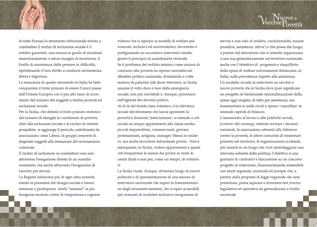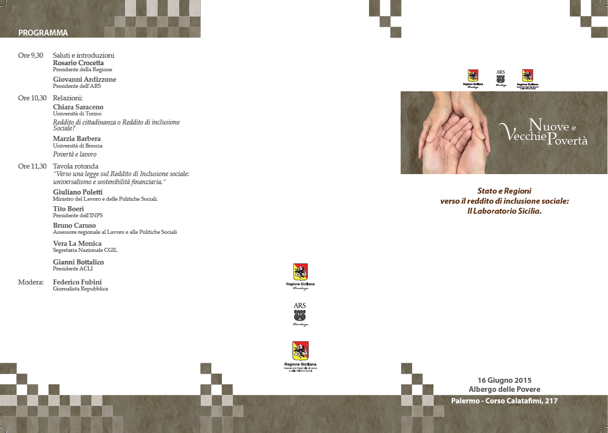 PALERMO - Nuove e Vecchie Povertà - Stato e Regioni verso il reddito di inclusione sociale: Il Laboratorio Sicilia