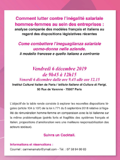 PARIGI - Come combattere l'ineguaglianza salariale uomo-donna nelle aziende. Il modello francese e quello italiano a confronto