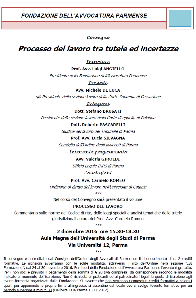 PARMA - Processo del lavoro tra tutele ed incertezze
