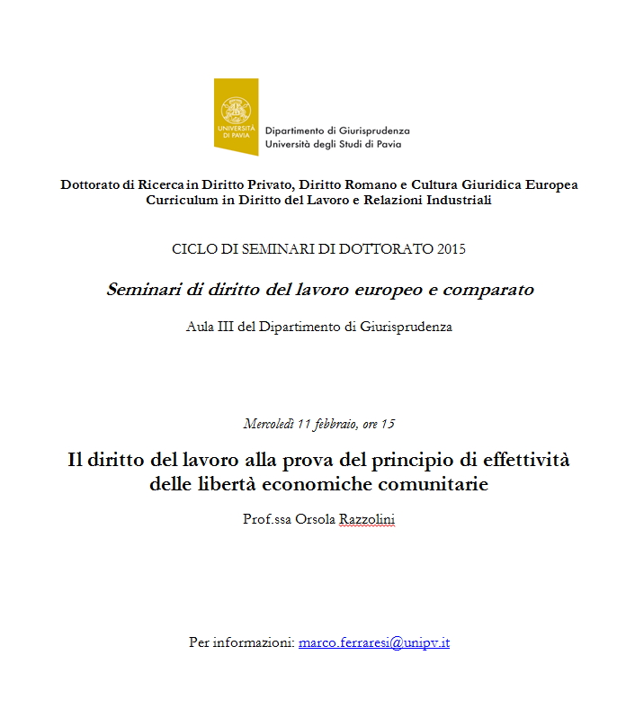 PAVIA - Ciclo di seminari di dottorato 2015. Il diritto del lavoro alla prova del principio di effettività delle libertà economiche comunitaria. Prof.ssa O. Razzolini