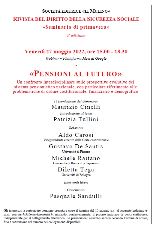 Gli interessati a partecipare vorranno prenotare entro il termine del 15 maggio p.v. al seguente indirizzo email: segreteria3@mauriziocinelli.it, inviando, contestualmente, il proprio indirizzo di posta elettronica, indispensabile per il collegamento telematico.
