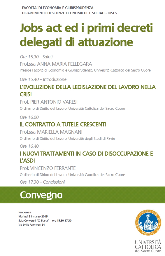 Da Mar, 31/03/2015 a Mar, 31/03/2015 Mode On-site-only 14/11/2022 PIACENZA - Jobs act ed i primi decreti delegati di attuazione on-site only | Via Emilia Parmense, 84 - 15:30