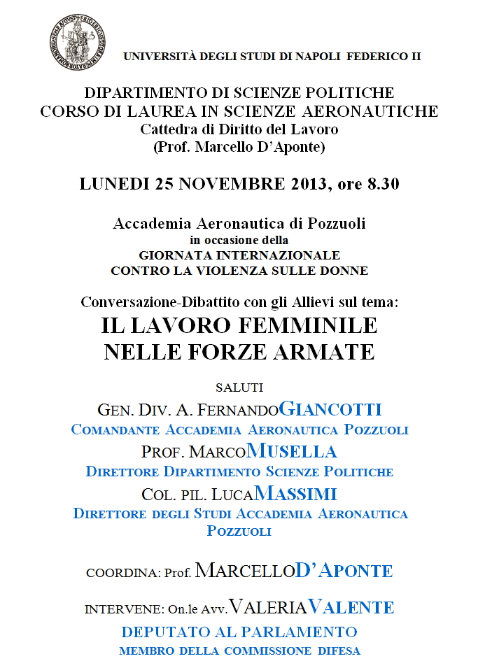 POZZUOLI - Il lavoro femminile nelle forze armate
