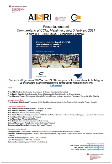Presentazione del Commentario al CCNL Metalmeccanici 5 febbraio 2021