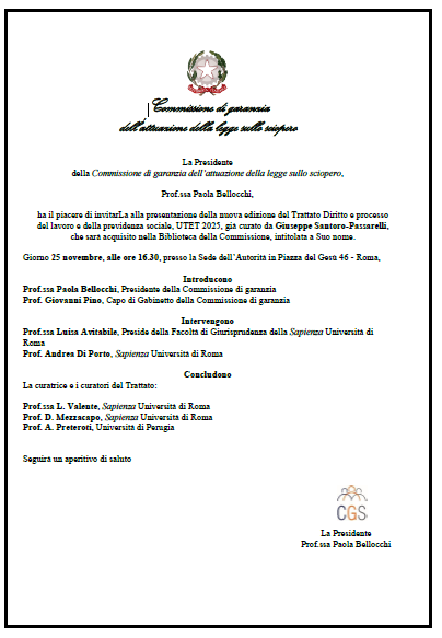 Coloro che volessero partecipare sono invitati ad inviare una mail all’indirizzo cerimoniale@cgsse.it entro il 18/11/2025