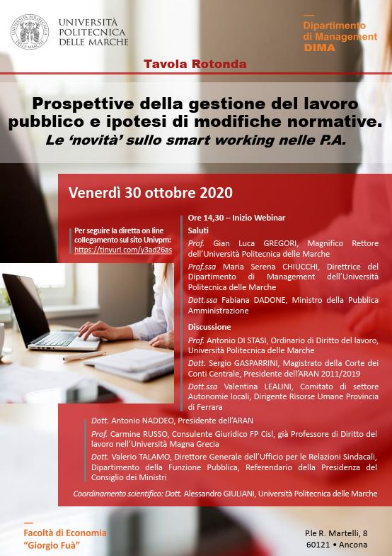 Prospettive della gestone del lavoro pubblico e ipotesi di modifiche normative. Le ‘novità’ sullo smart working nelle P.A.