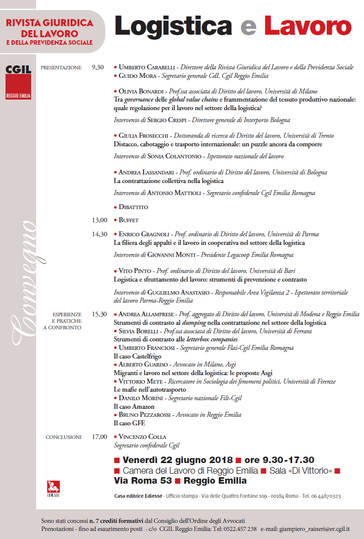 Da Ven, 22/06/2018 a Ven, 22/06/2018 Mode On-site-only 14/11/2022 REGGIO EMILIA - Logistica e lavoro on-site only | Via Roma, 53- ore 9.30