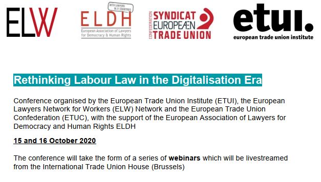 Da Gio, 15/10/2020 a Gio, 15/10/2020 Mode On-site-only 14/11/2022 Rethinking Labour Law in the Digitalisation Era (15 and 16 October 2020) on-site only |