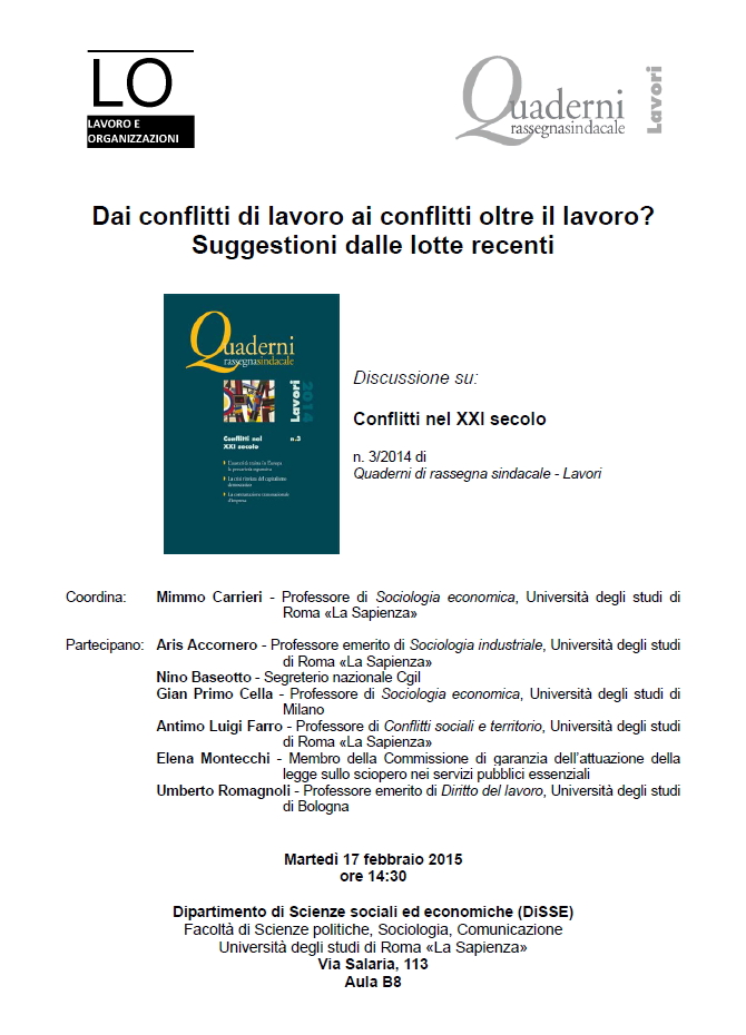 ROMA - Dai conflitti di lavoro ai conflitti oltre il lavoro? Suggestioni dalle lotte recenti