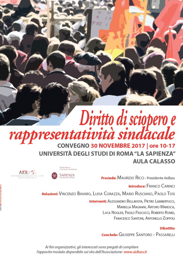 Da Gio, 30/11/2017 a Gio, 30/11/2017 Mode On-site-only 14/11/2022 ROMA - Diritto di sciopero e rappresentatività sindacale on-site only | Aula Calasso - ore 10