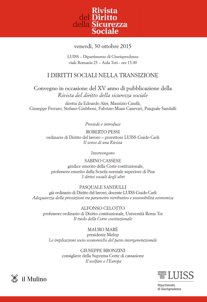Da Ven, 30/10/2015 a Ven, 30/10/2015 Mode On-site-only 14/11/2022 ROMA - I diritti sociali nella transizione on-site only | viale Romania 23 – Aula Toti - ore 15.00