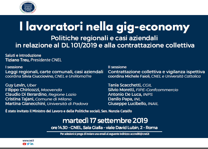ROMA - I lavoratori nella gig-economy - Politiche regionali e casi aziendali in relazione al DL 101/2019 e alla contrattazione collettiva