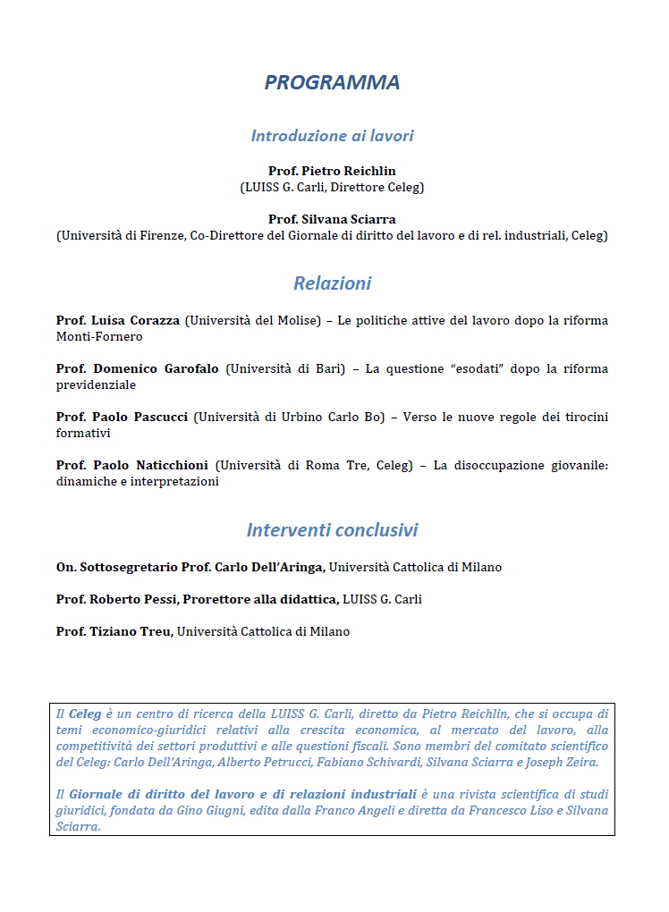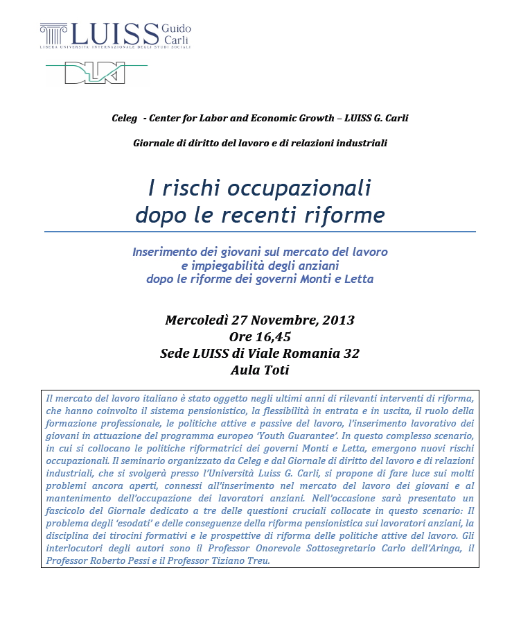 Da Mer, 27/11/2013 a Mer, 27/11/2013 Mode On-site-only 14/11/2022 ROMA - I rischi occupazionali dopo le recenti riforme on-site only | viale Romania 32 - 16,45