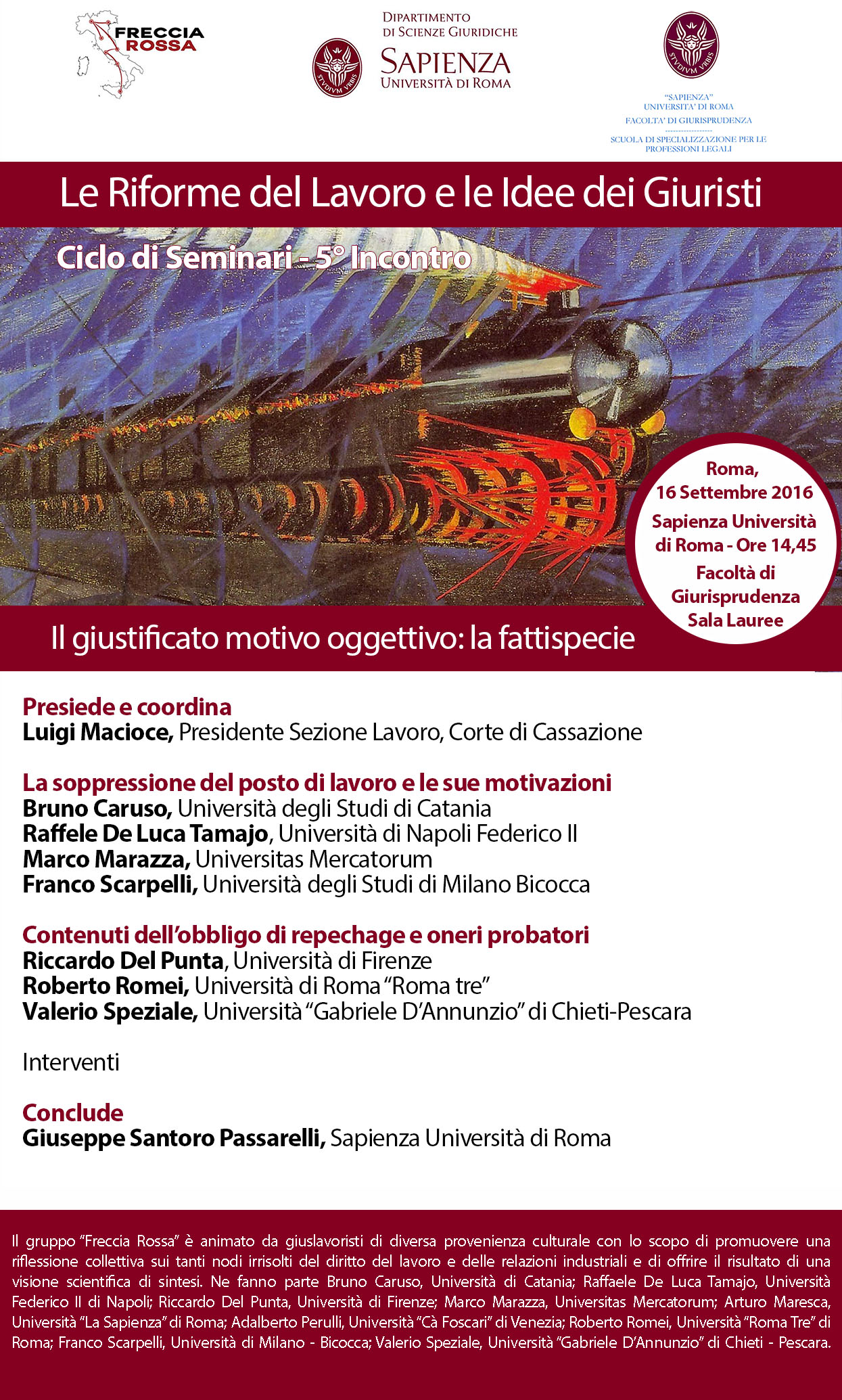 Da Ven, 16/09/2016 a Ven, 16/09/2016 Mode On-site-only 14/11/2022 ROMA - Il giustificato motivo oggettivo: la fattispecie on-site only | Facoltà di Giurisprudenza | Sala lauree - 14:30